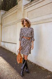 Limoncello Mid Sleeve Shift Dress made with 100% exclusively printed viscose & features a contrast pipping detail with a self belt tie.