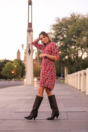 Limoncello Mid Sleeve Shift Dress made with 100% exclusively printed viscose & features a contrast pipping detail with a self belt tie.