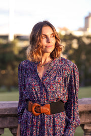 Manhattan Shirt made with 100% exclusively printed viscose & features a collarless neckline with flouncy sleeve detail.