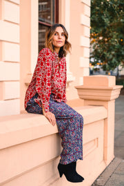 Manhattan Shirt made with 100% exclusively printed viscose & features a collarless neckline with flouncy sleeve detail.